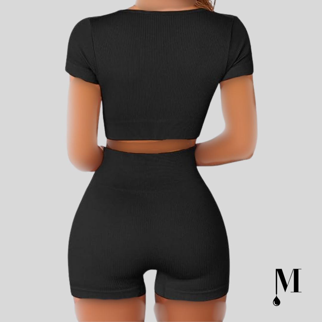 ست دو تکه نیم تنه و لگ کوتاه مشکی زنانه برند FAFOFA