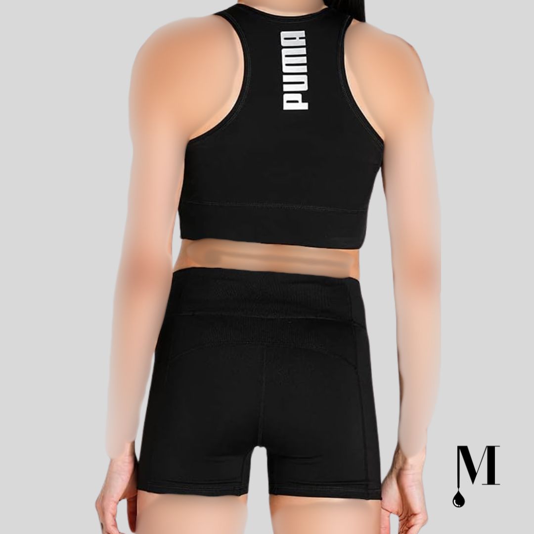 ست نیم تنه و لگینگ کوتاه مشکی زنانه برند PUMA