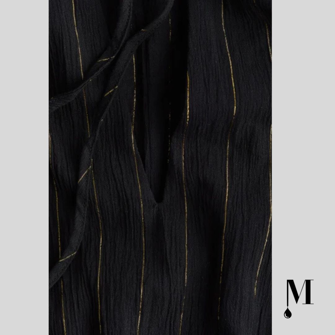 پیراهن تونیک با جزئیات بند درخشان، انتخابی عالی برای خانمهایی است که به دنبال ترکیب استایل و شیکپوشی هستند. این پیراهن با بافت پنبهای کرپ و نخهای درخشان، جلوهای خاص و جذاب به ظاهرتان میبخشد. یقه هفت و بندهای باریک آن، طراحی را لطیف و زنانه کرده و برش V شکل در جلو، زیبایی و جذابیت را دوچندان میکند. آستینهای بالنی به طول ۳/۴ با برش راگلان، راحتی و آزادی عمل بیشتری را فراهم میکند. این پیراهن بهخوبی با انواع شلوار یا لگینگها ست میشود و گزینهای مناسب برای مهمانیها و مجالس غیررسمی است. کشدار بودن در ناحیه کمر، تناسب خوبی ایجاد کرده و لبهی صاف آن نیز ظاهری مدرن به این لباس میبخشد. با انتخاب این پیراهن، میتوانید به راحتی در هر موقعیتی جلب توجه کنید و احساس راحتی و شیکی را تجربه کنید.